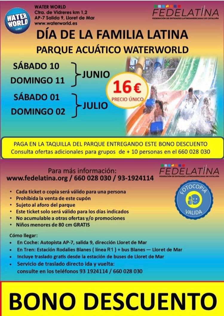 Y SIGUE EL VERANO CON EL DÍA DE DIA DE LA FAMILIA EN EL PARQUE ACUÁTICO DE WATER WORLD de Lloret de Mar. SÁBADO 10 - DOMINGO 11 DE JUNIO !!!